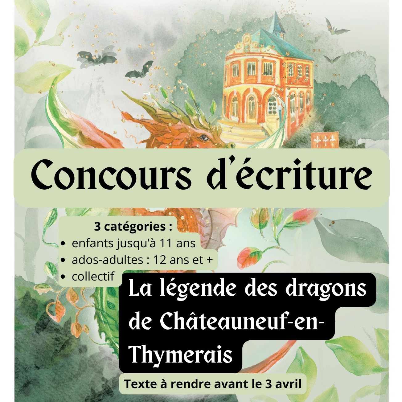 Voici quelques histoires écrites pour le Concours d’écriture des CASTELIADES. Le thème était la légende des dragons de Châteauneuf-en-Thymerais.