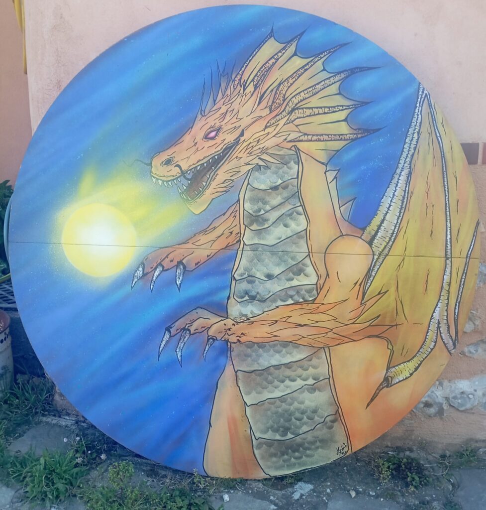 Et voici le joli dragon du soleil réalisé par l’artiste de Street Art Matt² :
